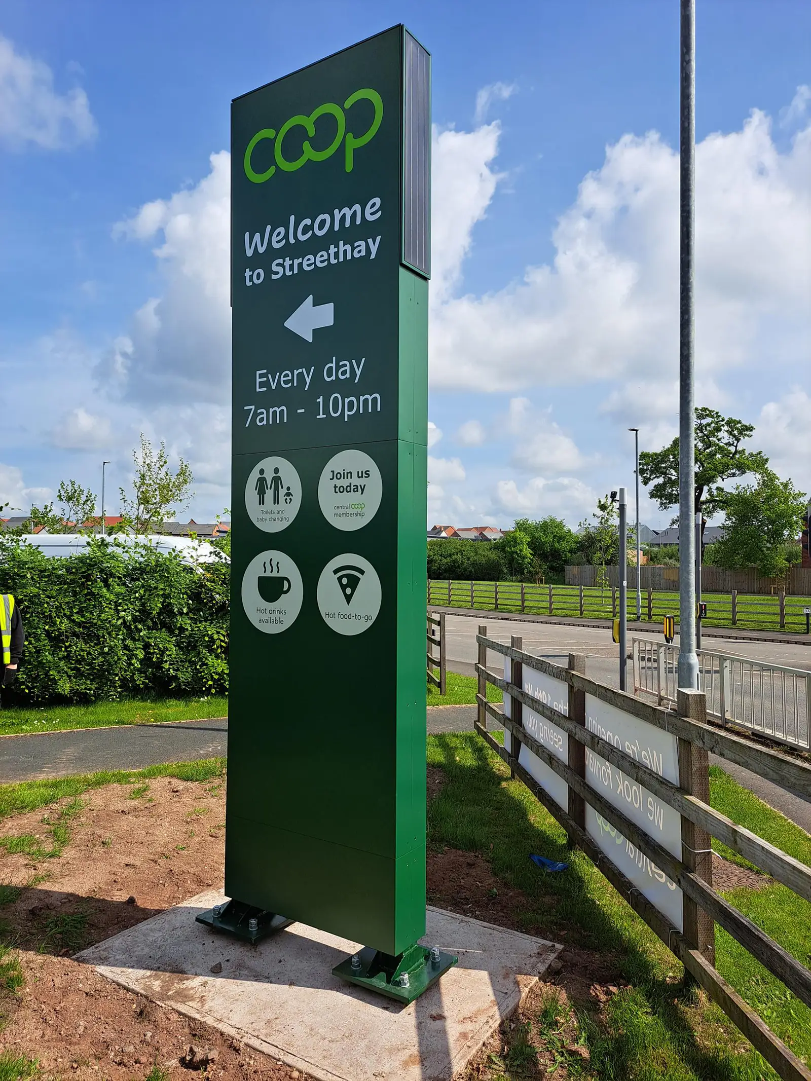 Our ability to work sustainably, holding a Bronze Ecovadis Medal for our ESG activities, and by offering expert branding consultancy within this rapidly-changing market has led to collaboration that included the installation of their first solar-powered totem in Streethay. This project marked a milestone in our shared commitment to sustainability and innovative design supported energy efficiency without compromising on aesthetics—so subtle, you’d hardly know it’s solar-powered.