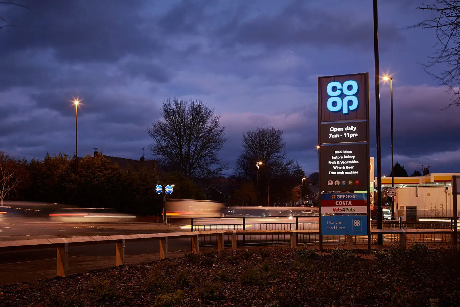 Astley has helped to deliver consistent, high-quality signage programmes for the Co-op across new store developments, petrol filling stations (PFS), and refurbishments following their acquisition of Sommerfield.