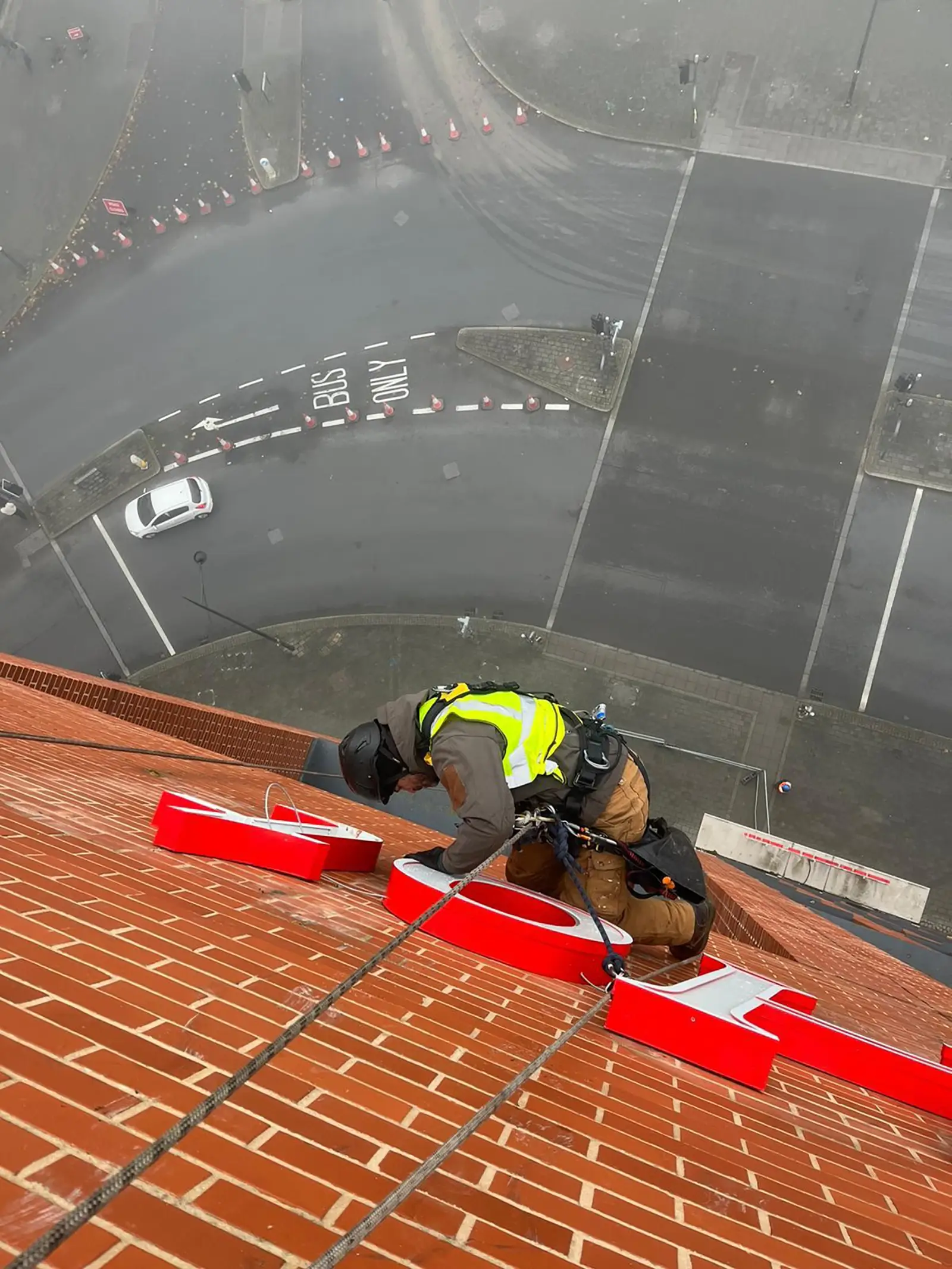 Superb abseiling crews at work installing new signage in the centre of Birmingham